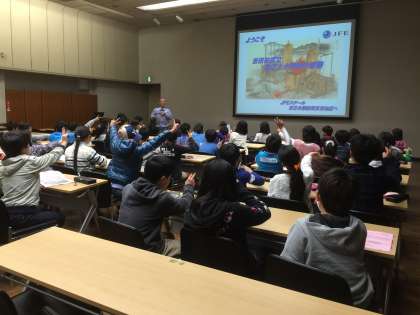 JFEスチールの皆さんに教えていただいた「ご安全に」というあいさつを元気にして、次の見学に向かいます。