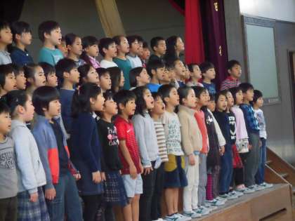 2年生の澄んだ歌声、明るい歌声が体育館に、そして聞いている私たちの心に響き渡りました。歌っている表情、姿もとてもすてきでした。