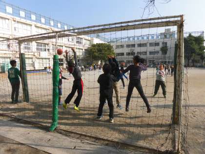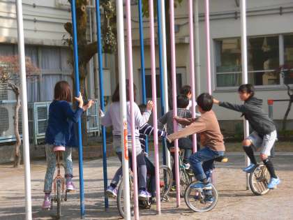 12月16日、冬とは思えないくらいあたたかな1日となりました。たくさんの子供たちが校庭で遊んでいます。輪になって縄跳びの技を高め合う子供たち、サッカーゴールを使ってボールで遊ぶ子供たち、一輪車の練習をする子供たち。どの子も楽しそうです。
