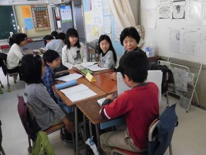 12月21日、3年生の教室にたくさんの地域の皆様をお迎えしました。これまで学習してきたことを確かなものにするために、3年生の子供たちが地域の皆様へインタービューを行ったのです。テーマは「食」に関するものです。お店屋さんの年の暮れについて質問したり、敗戦直後の食について教えていただいたりと、話は尽きません。大切なことをたくさん教えていただくとともに、楽しいひと時を送ることができました。