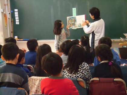 お楽しみ会を楽しむ子供たちです。すてきな出し物に大きな拍手がたくさんおくられました。