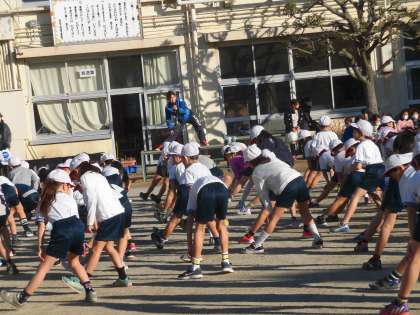 学校公開期間2日を迎えた朝、学校では体育朝会が行われました。今日から体力向上月間の取り組み、後半戦に入ります。「ペースランニング」といって、一定の時間に自分のペースをつかみ、何週走ることができたかを記録していきます。記録は友達と比較するものではなく、自分の記録への挑戦になります。昨日より今日、今日より明日と、自分の記録を少しずつ伸ばしていくことができるよう練習を進めていきます。朝と中休みの5分間がペースランニングの時間になります。2月には記録会を行います。子供たちも一生懸命にがんばっています。