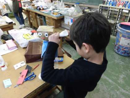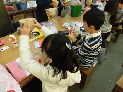 2年生の図工の様子です。ペットボトル人形の制作に熱心に取り組んでいました。子供たちのアイディアあふれる作品を見ていると、思わず笑顔になってしまします。表情豊かに、髪や洋服を工夫して素敵な人形ができあがりそうです。