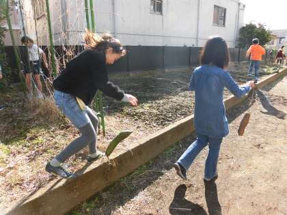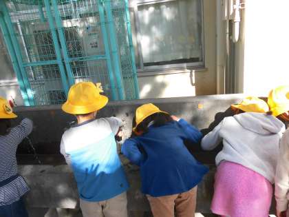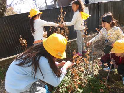 冬を迎え、ヘチマや藤の実や綿の実は枯れてしまったけれど、命のバトンとなる「種」を残してくれました。子供たちは、この種を大切そうに手に取り、またかわいらしい芽を出してくれることを願っているかのように、ギュッとに握りしめていました。ビオトープの活動時間はあっという間に過ぎ、次の活動、ペースランニングの取り組みの時間になりました。休み時間が終わると、うがい手洗いも忘れません。