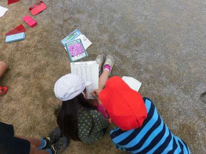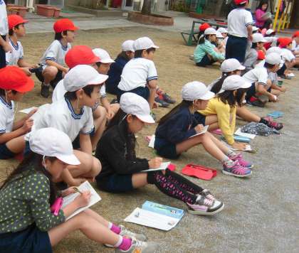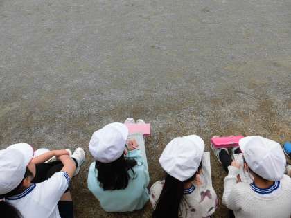 子供たちは、走るだけでなく、友達が走った周数を確実に記録していきます。この記録はとても大切な役割分担の一つです。間違わないように、しっかり友達を見守り、記録していきます。