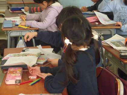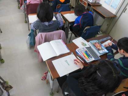 3年生の国語の授業の様子です。今日は「くわしくする言葉」の学習をしました。最初に、2年生で学習した「主語」と「述語」の復習です。その後、「花がさきました」の文章からイメージする絵をそれぞれ描き、自分の描いた花を詳しくする言葉をつけたして文章にしました。できた文を友達と読み合う活動も行いました。3年生のみんなの絵がとても上手で驚きました。友達との学び合いも仲良くしっかりできていて3年生の学びの姿勢に感心しました。