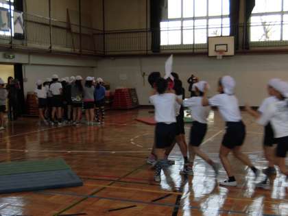 みんなとても楽しそうです。6年生を思い、6年生に楽しんでもらおうと準備や進行に熱心に取り組んだ5年生、すばらしい企画力でした。卒業間近の3月3日・・・6年生も5年生も、心に残るスポーツ大会になったことでしょう。