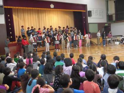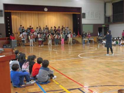 1年生から5年生までのすばらしい出し物に6年生が「返礼」しました。「アフリカンシンフォニー」の演奏です。6年生が力を合わせて創り上げた力強い音楽に、見ている側は引き込まれます。6年生の演奏する姿には凛とした美しさがありました。この6年間の成長の大きさを感じる瞬間でした。演奏が終わると会場から大きなアンコールが起き、素敵な演奏をもう一度聴くことができました。