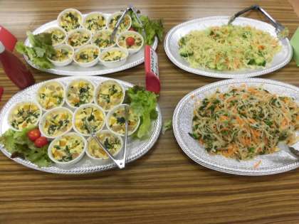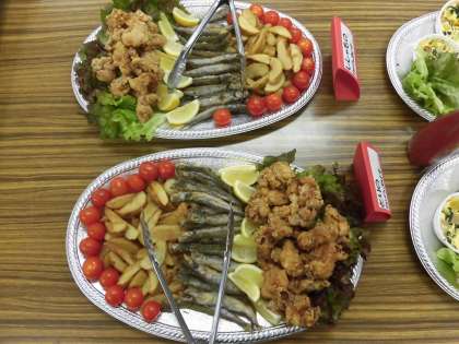 3月10日、6年生の卒業をお祝いして、給食室から「バイキング給食」のプレゼントがありました。給食室では、通常のメニューに加えフル回転で子供たちの好きなメニューをたくさん調理してくださいました。6年生も「おいしそう!」とうれしそうです。見てください。ほんとうに豪華なバイキングになりました。