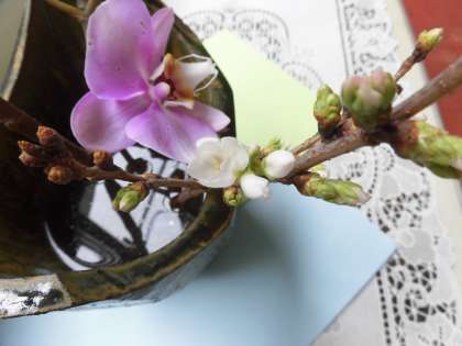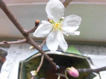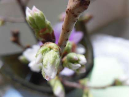 2月のまだ寒い日、東京でも雪が降った日・・・池之上小学校の桜の枝が折れてしまいました。花芽をたくさん持っていた枝だったため、学校で大切に育てていました。その桜が芽を大きく膨らませ、かわいい花を咲かせはじめました。生命力の強さに驚くばかりです。大きな幹から折れてしまった枝ですが、しっかり命をつないでいたのです。学校に飾ってありますのでお時間あるときにご覧ください。