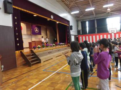 平成27年度の修了式を行いました。今日をもって1年間の学びが修了します。修了式では「修了証」を代表児童に授与しました。その後、担任から一人一人にあたたかな声掛けを行いながら手渡ししました。みんなほんとうによくがんばりました。大きく成長しました。たくさんのことを経験し、その一つ一つの経験を糧にして、4月からは中学校進学、一つ上の学年への進級が待っています。