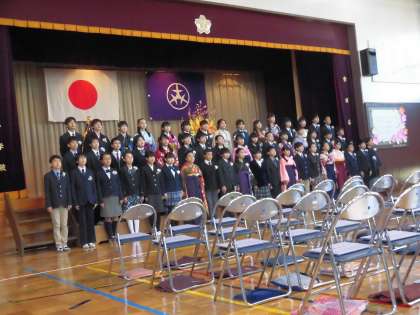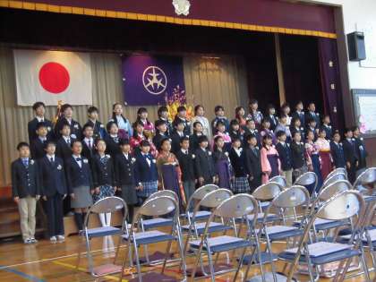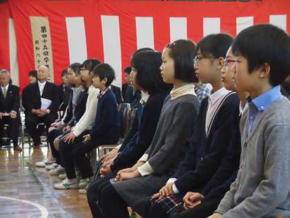 卒業式もクライマックスを迎えました。これまで一生懸命に練習してきた「門出のことば」です。6年生の心からの思いが伝わってきます。6年生のまっすぐな一生懸命な思いを受け止めなら、私たち教職員は感無量でした。5年生も6年生の気持ちをしっかり受け止めていました。