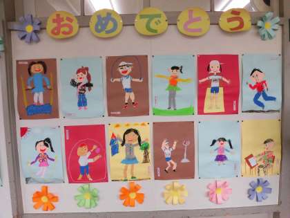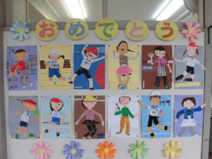 池之上小学校に入学してくる新1年生が使う教室。2年生が心を込めて作品作りをしました。この教室で、1年生が楽しく元気に学校生活を送ってくれることを心から待ち望んでいます。