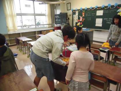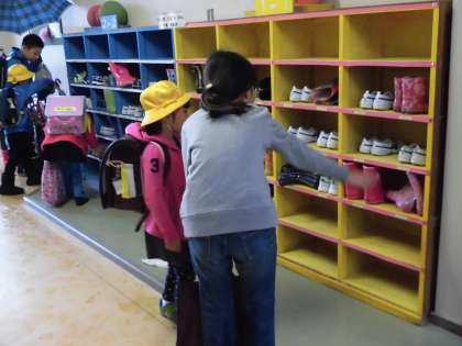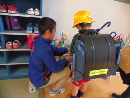 6年生がやさしい心と言葉で1年生のお世話をしています。傘のたたみ方、靴の入れ方、教室までの行き方など、6年生のまなざしはあたたかさであふれていました。1年生もきっと安心して生活できたんことでしょう。