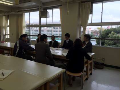4月6日の夕方、富士の学び舎企画会を開催しました。富士の学び舎は、富士中学校、代沢小学校、多聞小学校、花見堂小学校、池之上小学校の5校で構成され、児童生徒の義務教育9年間を充実したものにするための取り組みです。28年度のスタートにあたり、学び舎での活動計画を各校の教職員で話し合いました。