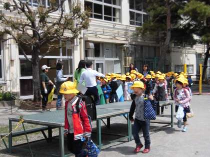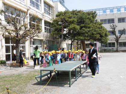 1年生の下校の様子です。しばらくの間は集団で下校をし、教職員がコースごとに見守ります。今日は4月9日の土曜授業の日。今年度初めての「安全運転呼びかけ隊」の活動もありました。今年度も北沢警察署、地域の皆様、保護者の皆様の多くの方々のご協力のもと、「安全運転呼びかけ隊」の活動を行います。子供たちの下校時の安全を見守っていただいています。まだ慣れない学校生活を送る1年生も、皆さんの見守りのおかげで安心して下校することができました。1年生の歩き方もとても立派です。