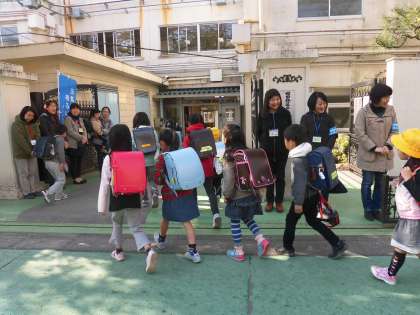 今日も元気なあいさつ「おはようございます」の声が響き渡ります。地域の皆様、保護者の皆様にあたたかく見守られながら1日がスタートしました。そして、教室に向かう子供たちは、犬走りというコンクリートの部分を歩きます。ルールをしっかり守る子が多いのも池之上小のよさの一つです。ほんとうに爽やかな朝になりました。