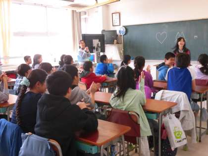 6年生になって初めての英語の授業です。自己紹介をしながら、みんな笑顔で英語に挑戦していました。英語に親しむこと、英語で楽しむことを大切にしていきたと思っています。今年度は、英語を担当する教員と担任、そして英語支援員による楽しい授業を行っていく予定です。5・6年生は週1時間が英語の時間になります。