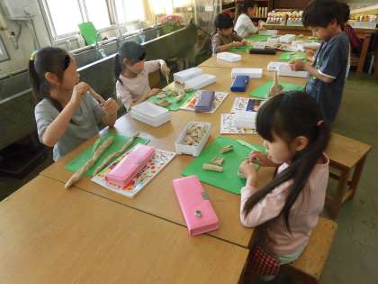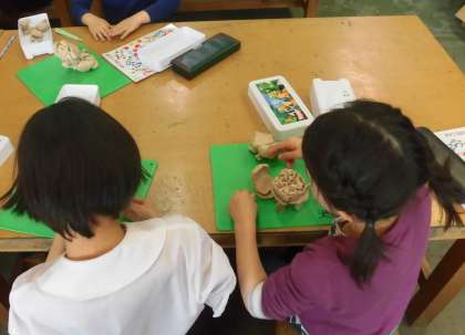 2年生が図工室で授業を行っていました。今日は粘土の学習です。細かな部分まで一生懸命に作品を作り上げる2年生。個性豊かな作品ができあがりました。今年度は秋に展覧会があります。子供たちの作品がたくさん飾られることを今から楽しみにしています。