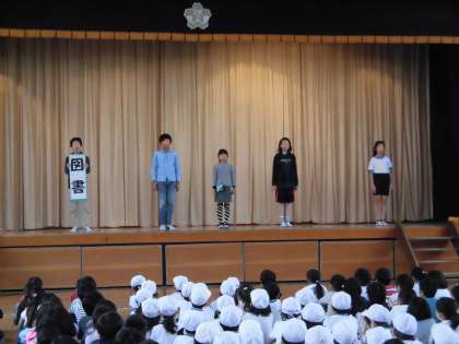 委員会発会式の様子です。練習の成果をしっかり発揮して、各委員会の活動内容や全校のみんなにお願いしたいことなどを伝えることができました。大きな声で、みんなに聞きやすい話し方で堂々と話すことができる5・6年生。とても立派な態度でした。これからの委員会では、大いに活躍してくれることでしょう。期待しています。