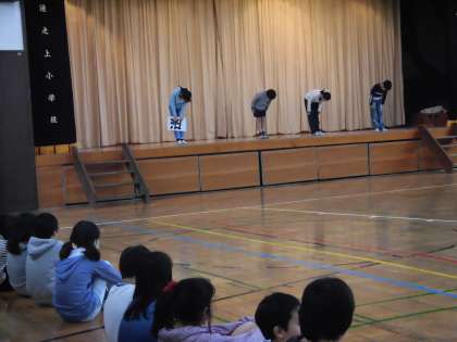 4月21日、朝の集会の時間を活用して「委員会発会式」が行われます。「発会式」では、各委員会の代表の5・6年生たちが今年度の委員会の豊富を全校の子供たちの前で発表します。朝早く体育館に集まり、最後のリハーサルを行っていました。少し緊張の様子もありますが、自分の力を精いっぱい発揮できるように練習に励んでいました。