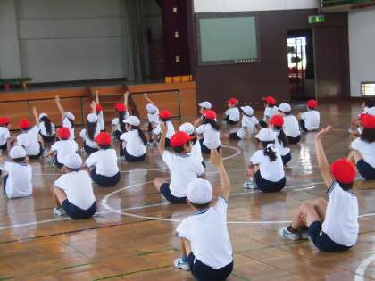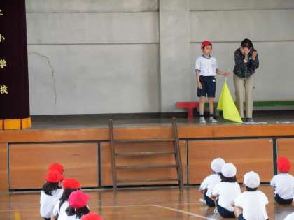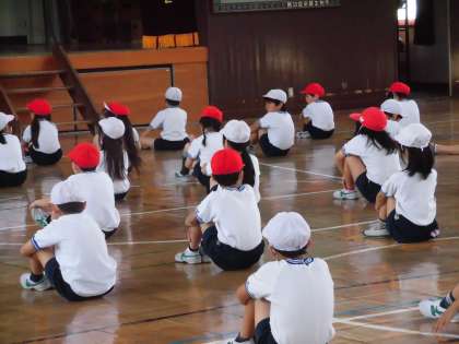 先生から「体育座りも大切な表現の一つですよ。」とお話がありました。先生の話をしっかり聞いたり、自分の動きを振り返ったりすることもとても大切な時間です。これから本格的に練習が始まります。意欲をもって取り組んでほしいと願っています。