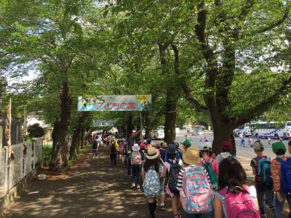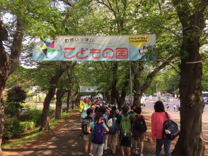 こどもの国に着きました。風がさわやかに吹いています。野鳥のさえずりも聞こえます。