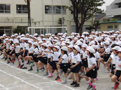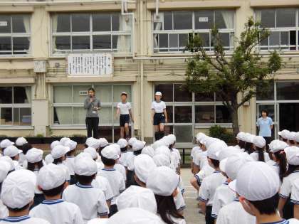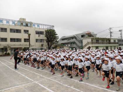 行進の練習もしました。運動委員会の5・6年生がお手本を示してくれました。手をしっかり伸ばして、力強く行進している子がたくさんいました。