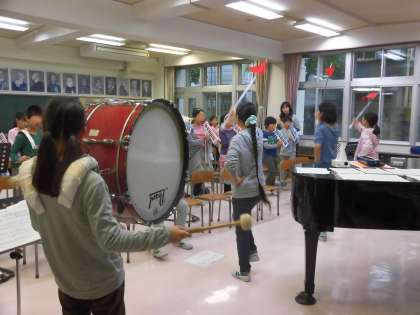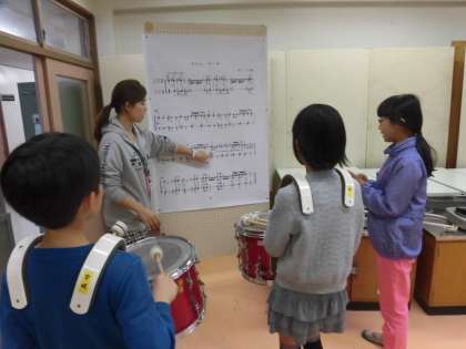 リズムを合わせることがとても大切な鼓笛隊。楽器ごとの練習も欠かせません