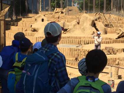 お腹に赤ちゃんがいる母ザルもいました。このお母さんザルから先に生まれたお兄さんサルやお姉さんサルは、おなかの大きいお母さんザルを守るのだそうです。家族だけでなく、サルたちは集団の仲間として、小さなサルや赤ちゃんのサル、お母さんザルを守る行動をとる、とても仲間意識の強い行動をするというお話もうかがいました。