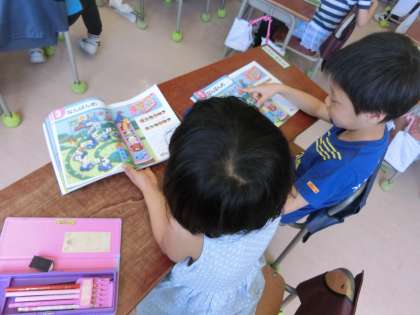 1年生の算数の授業の様子です。隣のお友達と問題を出し合いながら、今日の学習の定着を行っていました。自分の意見をはっきり言うこともできました・手の挙げ方がまっすぐですばらしい学習態度です。