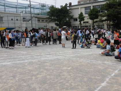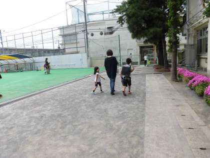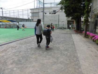 避難訓練が終わると、保護者の皆様に子供たちを引き渡す訓練を行いました。ご協力ありがとうございました。