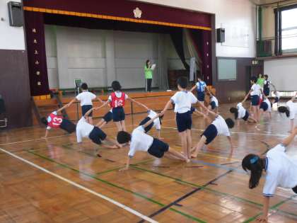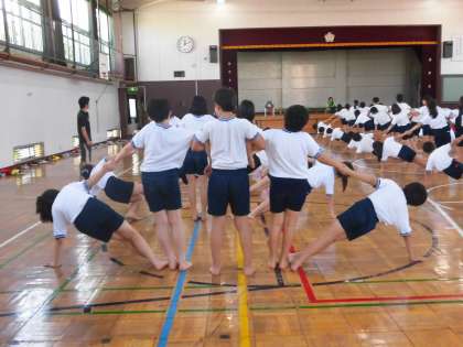 5・6年生の運動会の練習の様子です。一人技・三人技・五人技nの練習を行っていました。先生から「組体操で一番大切なきれいにそろって気を付けができることです。」という話がありました。心も身体も5・6年生が一つになる美しさを体験してほしいと思います。
