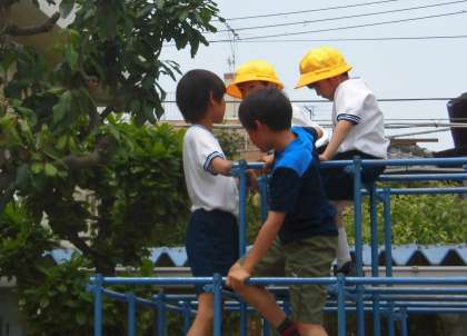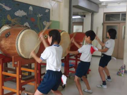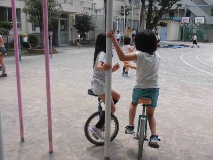 低学年リレーの練習のほかにも、子供たちは様々な場面で休みに時間を楽しんでいました。運動会の和太鼓の特訓をしている6年生、ジャングルジムの一番上で気持ちよさそうに天を仰いでいる子供たち、一輪車の練習をしている子もいます。活気あふれる休み時間です。