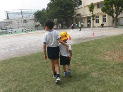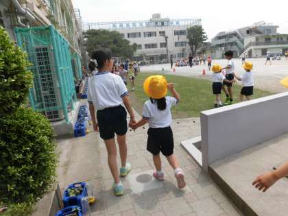 20分休み、やさしいお兄さんやお姉さんと手をつなぎ楽しそうに遊んでいる1年生を見かけました。1年生は、6年生のやさしさがうれしいようです。