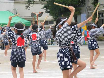 池之上小学校の30年以上の伝統を引き継ぎ、4年生が池之上八木節を踊ります。68名の力強い踊りと気合の入ったかけ声、そして6年生の和太鼓とたくさんの見せ場がありました。