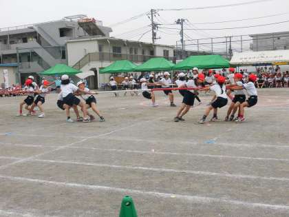 中央に置かれた竹の棒を3・4年生が引き合います。どの棒を引くのか、チームで作戦も立てました。竹の棒を獲得すると、次は応援に走ります。棒の長さによって得点も異なり、わくわくどきどきする競技になりました。