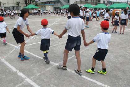 1年生は、優しいお兄さん、お姉さんのことが大好きです。休み時間も一緒に遊んでもらっています。