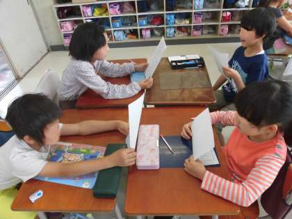 友達と協力する姿、友達に自分の考えを伝える姿、先生にがんばりを報告する姿が見られました。