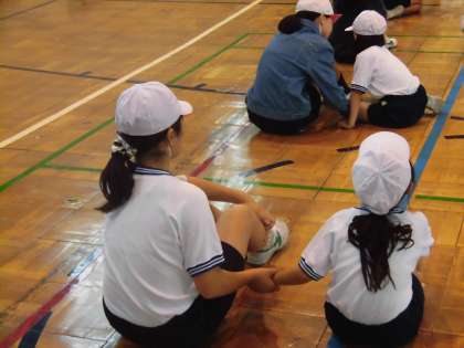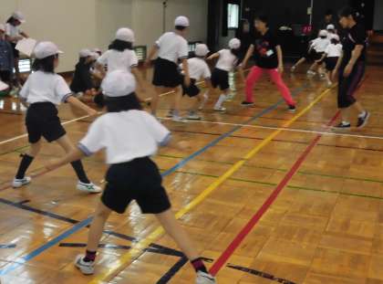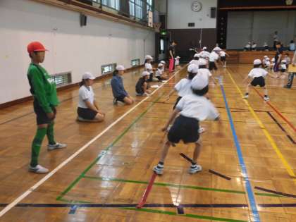 6月7日、全校でスポーツテスト実施しました。今日行った種目は、握力・上体起こし、長座体前屈・反復横跳び・立ち幅跳びです。1年生と6年生、2年生と5年生、3年生と4年生がペアを組み、実施しました。特に、5年生と6年生は、なかよし班活動で一緒の1年生・2年生のスポーツテストをあたたかな気持ち見守りました。やり方を教えてあげたり、記録を書いたり、一緒に移動したりと、大活躍です。写真は、反復横跳びの様子です。