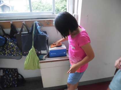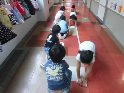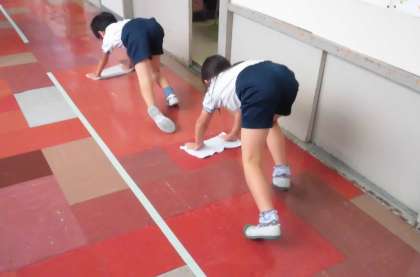 掃除の音楽が鳴り始めると、子供たちは楽しい遊びの時間をさっと終え、掃除の準備にかかります。みんな一生懸命に上手に掃除をしていました。