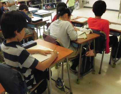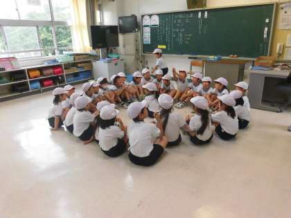 6月7日、曇り空が続く中、子供たちが楽しみにしている昼休みの時間になりました。小雨が降りはじめると、放送で「校舎内で静かに過ごしましょう」とアナウンスがありました。子供たちは残念そうに教室に戻ります。教室の様子を見に行くと、2年生がクラス遊びをはじめていました。楽しそうです。3年生は連絡帳を書く時間にしたようです。4年生は、輪になって鍵盤ハーモニカやリコーダーの練習をしていました。それぞれが工夫して雨の休み時間を過ごすことができました。