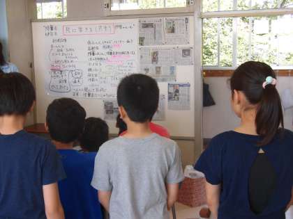 6年生の「すくすくタイム」は、5・6時間目に行う「車いす体験」の事前学習でした。先生から「目的をもって体験することが大切」というお話がありました。掲示コーナーには、共に生きる「共生」と題した調べ学習や人権に関する新聞記事があろ、これらを使って5・6時間目にどのような目的をもって授業に臨んだらいいのか、皆で確認をしていました。健やかに生きるためには、豊かな思いやりのある心が必要です。