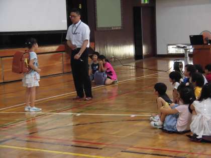 知らいない人に声をかけられたらついていかないことが大切だということを教えていただきました。後ずさりしながら防犯ブザーを鳴らすことも大切です。実際にシミュレーションしながら確認をしました。