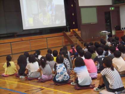 3・4年生のセーフティ教室の様子です。3・4年生の内容は「連れ去り防止」です。1・2年生と同様に、「いかのおすし」の合言葉で、危険から身を守るために大切なことを教えていただきました。そのほかにも、インターネットトラブル、留守番しているときの危険などについて考えました。おまわりさんから以下の大切な点を教えていただきました。