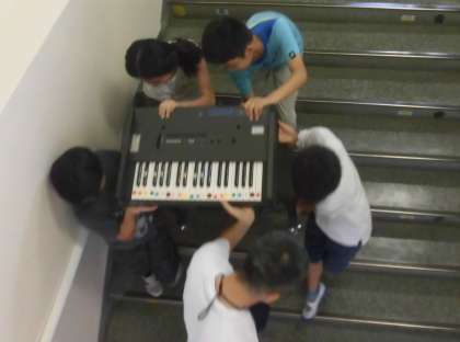 音楽委員会のすばらしい演奏を聴きながら6年生が体育館で待っています。演奏が終わると大きな拍手がおくられました。仲間のがんばりをたたえる6年生。拍手のあとは、楽器の片付けの手伝いをしました。声を掛け合い、心を一つにしています。みんなで協力して物事に取り組む姿勢が6年生のすばらしさの一つです。