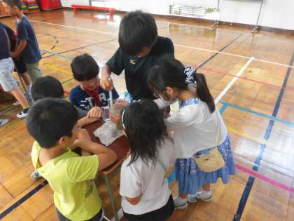 班で協力して実験に取り組んでいます。