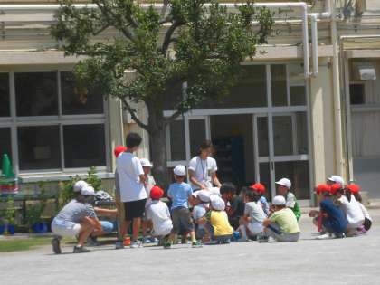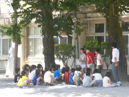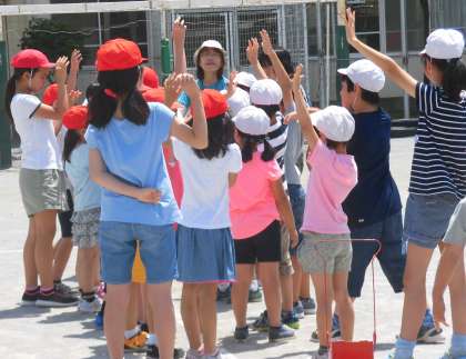 20分休みが終わると、それそれの班のメンバーが集合して、今日の活動の振り返りを行いました。学年・学級の枠を超えて、仲良く過ごすことのできる池之上小学校の子供たちの様子が見られました。
