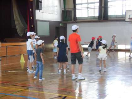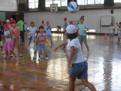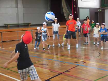 体育館では、ドッジボールを行っていました。楽しそうに活動していました。