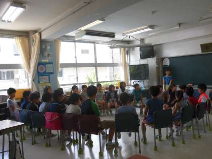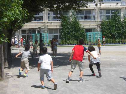 教室で輪になってゲームをする班、校庭で「だるまさんが転んだ」をする班など、それぞれの活動場所では、みんなで考えた楽しい遊びを展開させていました。異学年交流のため、1年生でも楽しく遊べる活動を6年生のリーダーたちが計画してくれます。こうした全校での取り組みである「なかよし班活動」は月に1回実施しています。